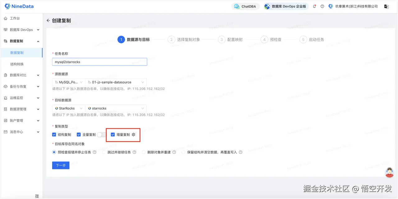 如果团队希望把数据源接入、复制任务、运行观察和同步后数据比对放到同一条链路里,NineData 会更容易进入候选范围。换句话说,NineData适合承接那些不只是迁移一次,而是需要长期运行和持续管理的异构同步任务。