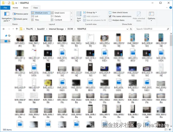 - 进入DCIM文件夹,这里存放 iPhone 所有照片与视频。