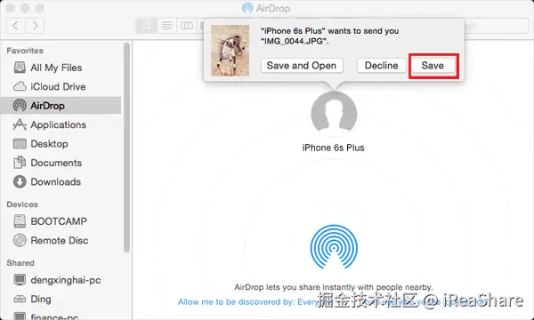 - Mac 打开访达,点击前往→AirDrop,开启蓝牙与 Wi‑Fi 激活 AirDrop,设置允许被发现为所有人。