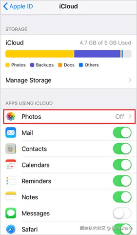 - iPhone 进入设置→[你的名字]→iCloud→照片,开启iCloud 照片。