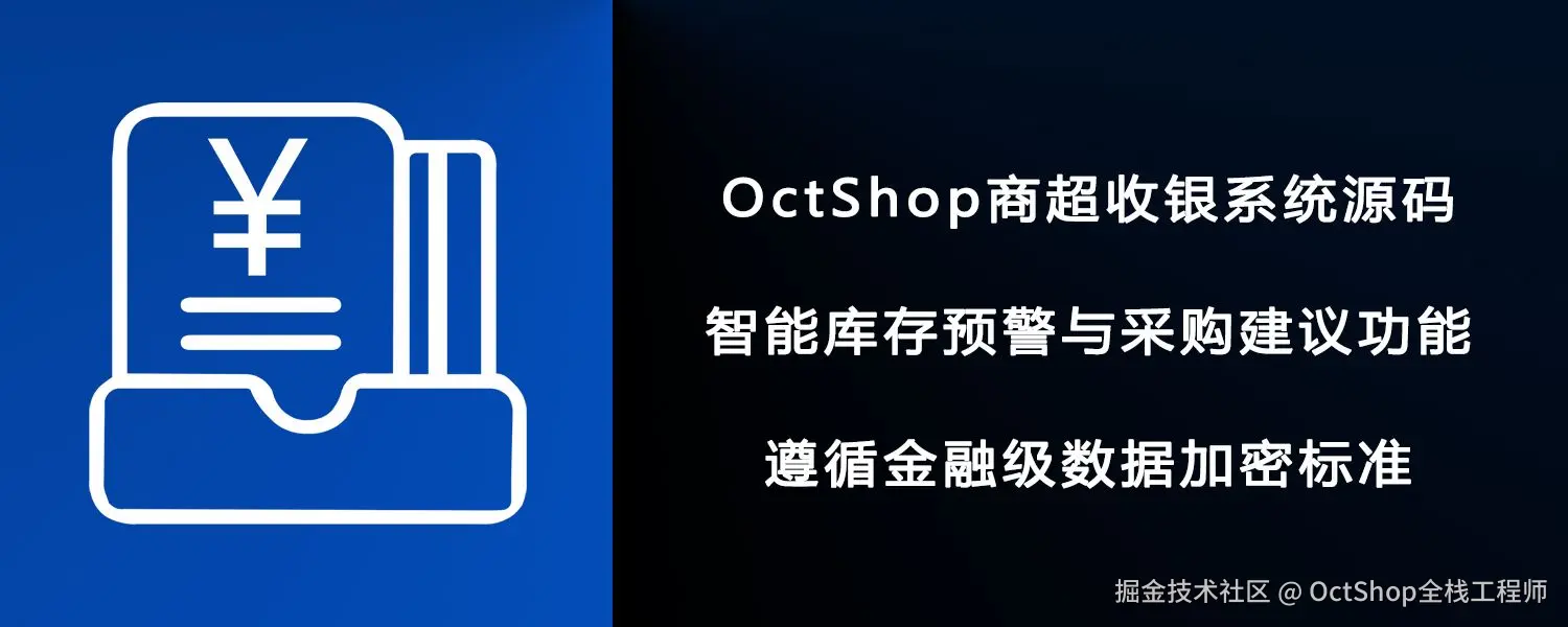 在新零售浪潮席卷全球的今天,传统商超正加速向数字化、智能化转型。作为连接商品、消费者与后台管理的核心枢纽,一套高效、稳定、易用的收银系统已成为现代商超运营不可或缺的基础设施。OctShop不仅是一款广受认可的开源B2B2C电商系统,其延伸打造的商超收银系统模块,正以软硬结合、前后端协同、线上线下融合的优势,为中小型超市、便利店、生鲜店及社区零售门店提供一体化智能收银解决方案。