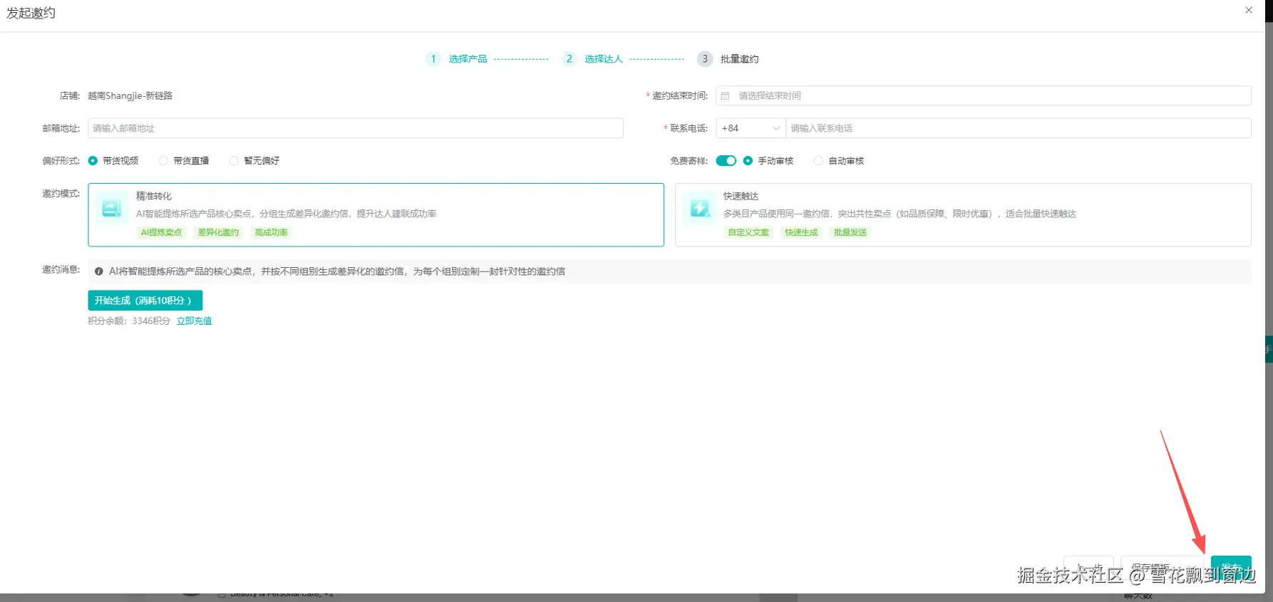 第五步、配置邀约: 设置参数并生成邀约模板。
