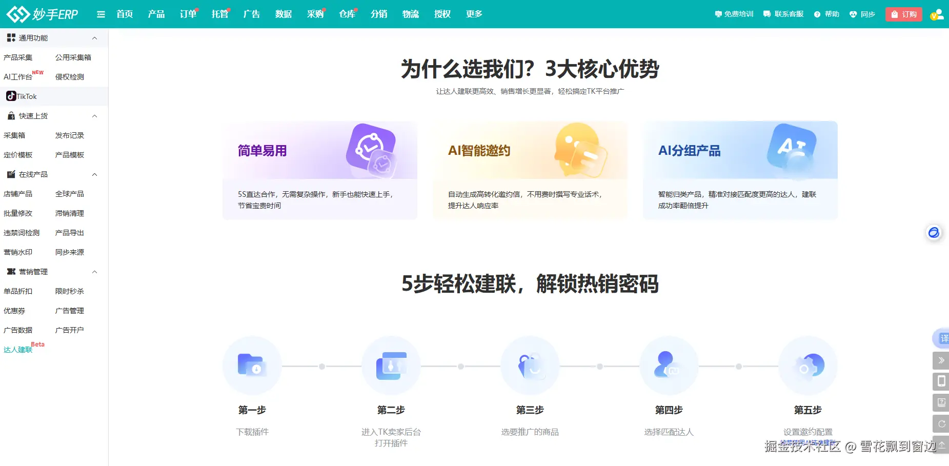 借助妙手ERP,卖家仅需5步即可完成达人邀约全流程。