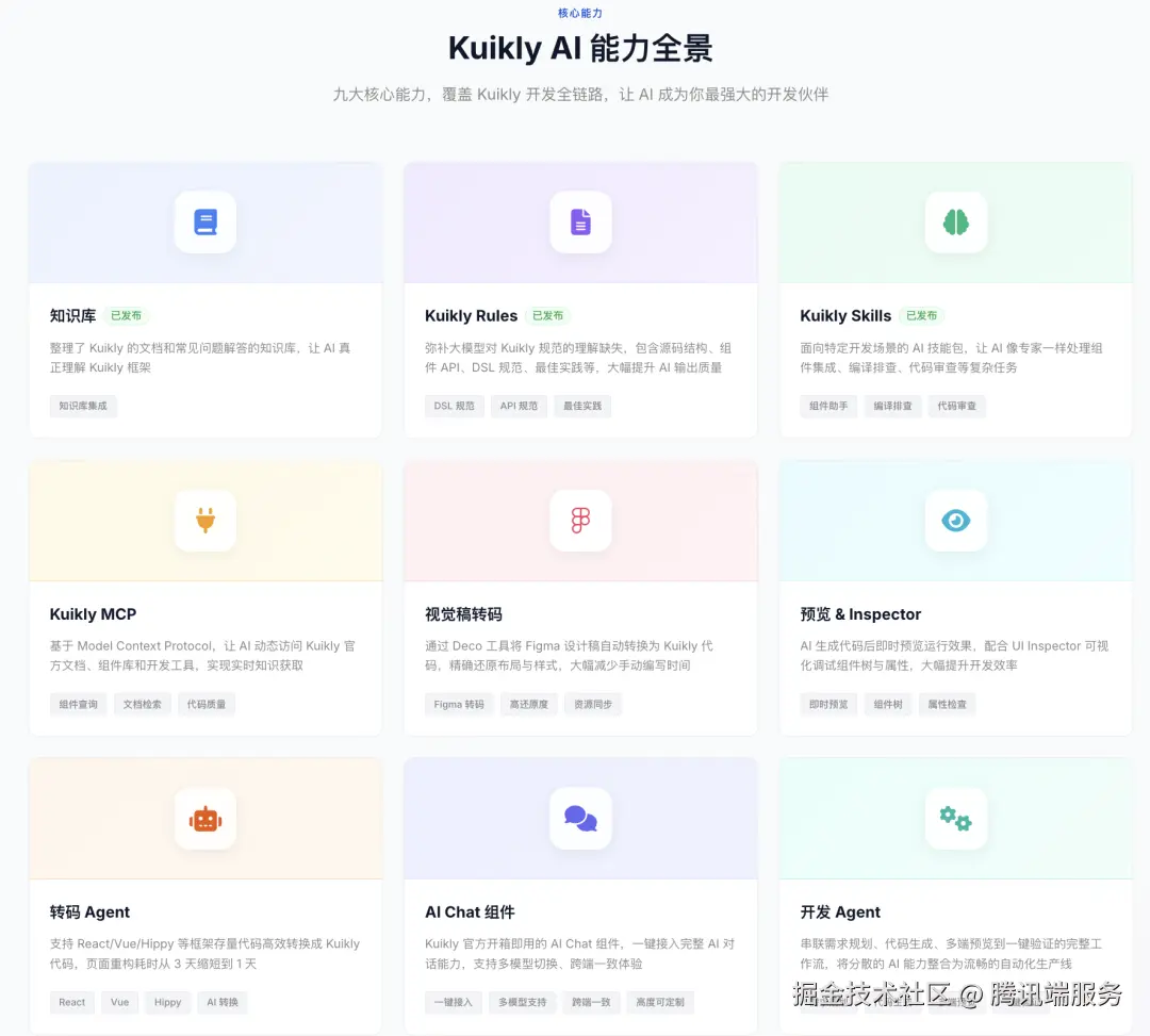 - Kuikly Skills:面向特定开发场景的 AI 技能包,让 AI 能像专家一样处理各种复杂任务,实现高质量的智能代码生成。