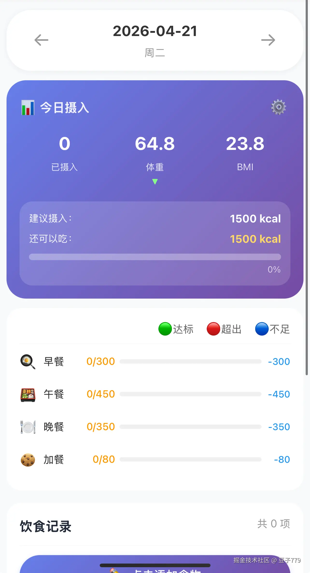 整个开发过程我都借助 AI 编程辅助,但真正做下来才发现:AI 并不是万能的。这篇文章就以一个纯新手视角,记录我从 0 到 1 实现第一个功能模块 ——记食物模块的真实全过程。