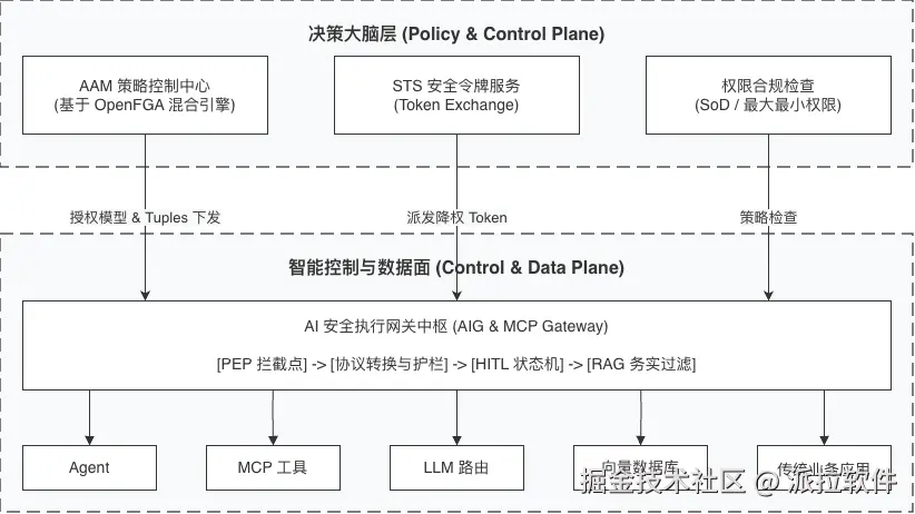 这些能力合在一起,意味着 AAM 管的已经不只是“授权决策”,而是从权限定义、运行时收缩,到高危动作兜底,再到数据访问阻断的一整套智能体权限治理闭环。