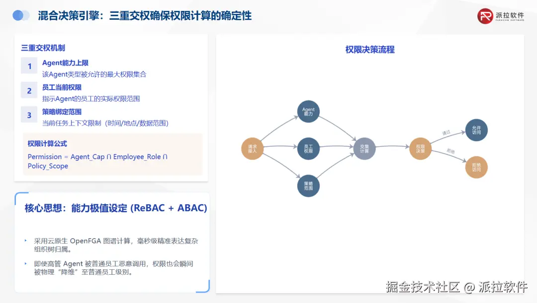 很多权限产品逻辑讲得清楚,但一到高频调用场景就顶不住。而对 AI Agent 来说,权限判断不是后台慢慢算,而是高频发生在Tool Calling 之前、多 Agent 协同之间、RAG 检索之前、跨系统流转节点上等。