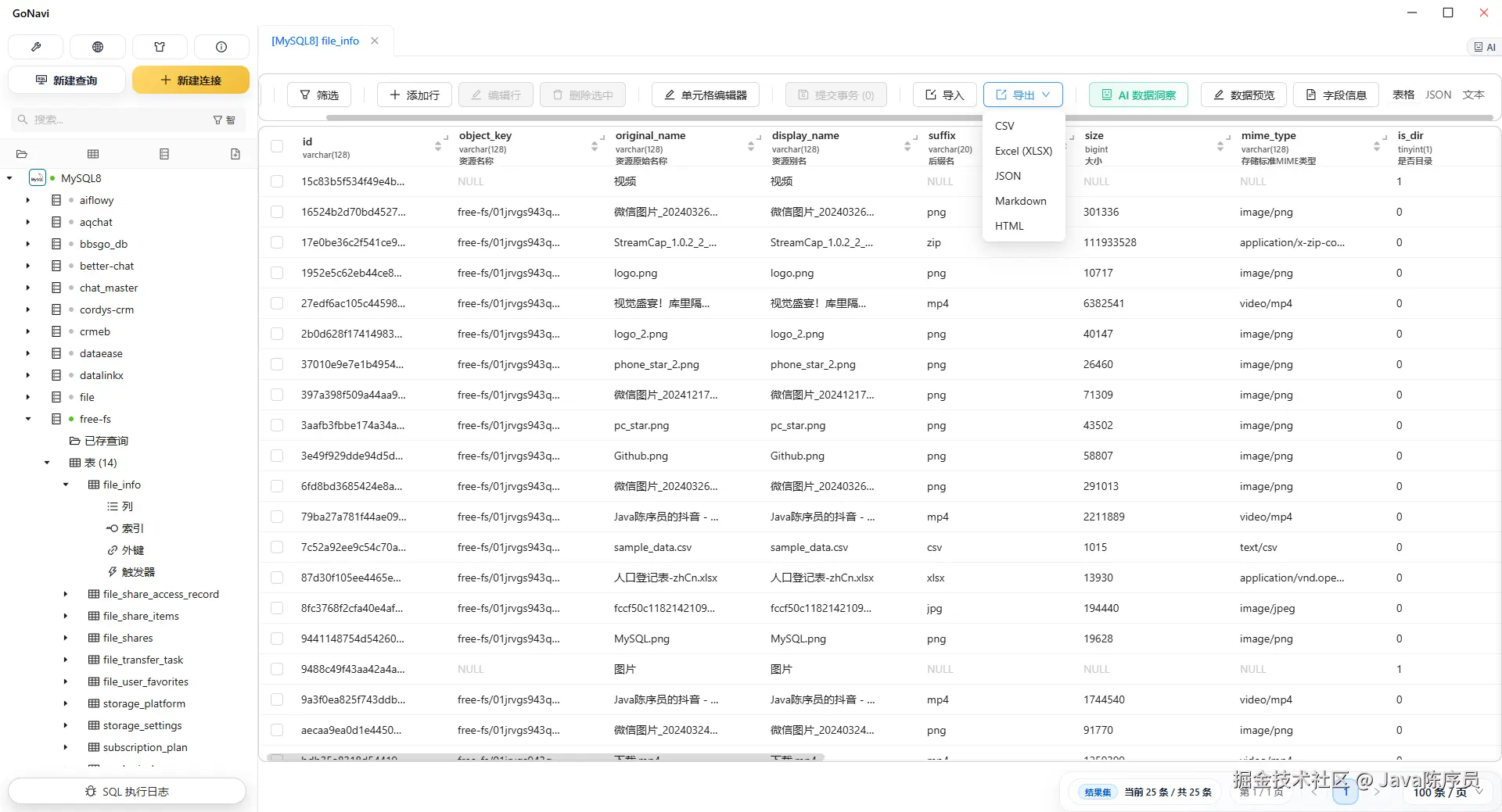 - 高效数据操作:支持单元格实时编辑、批量增删改、事务提交与回滚,支持 CSV、Excel、JSON、Markdown 多格式导出