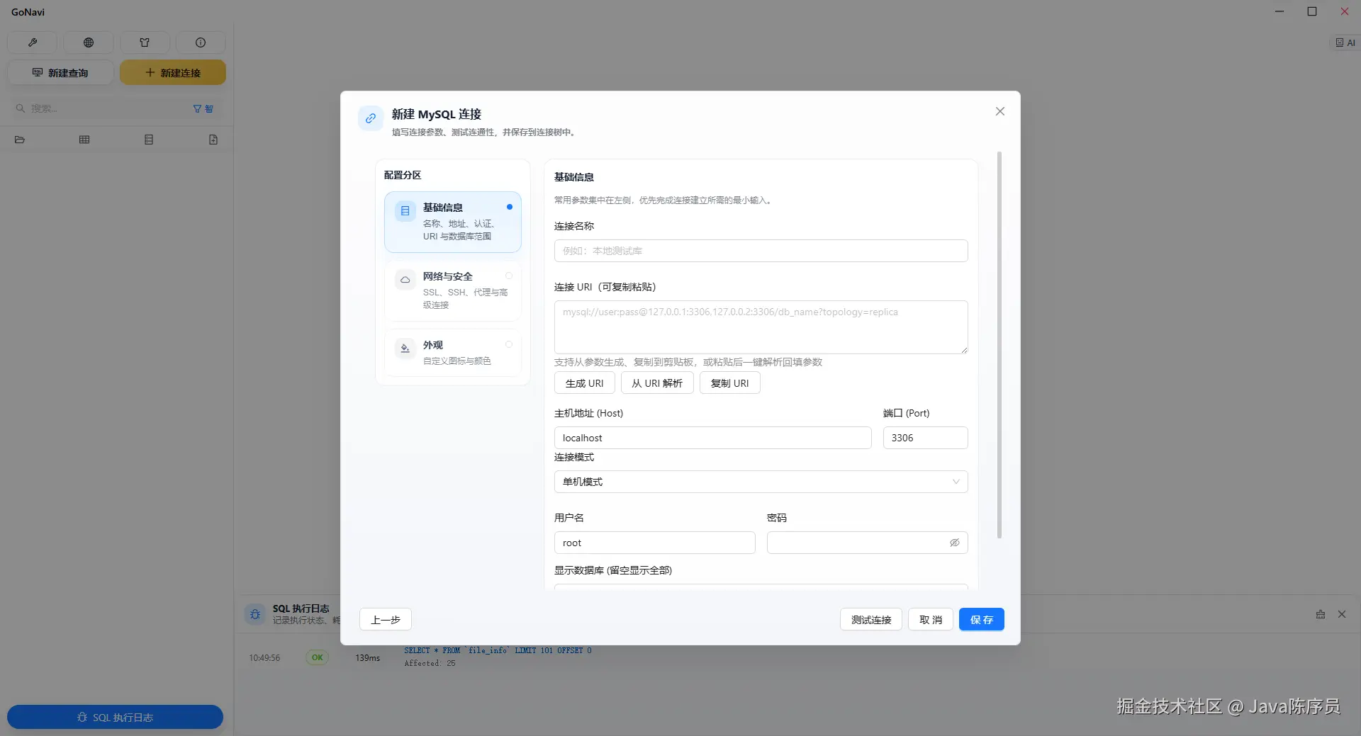 GoNavi 做为一款跨平台数据库客户端工具,相比于其他传统工具,更轻量,启动更快。而且功能强大,完美覆盖开发者、DBA 的日常需求。快去下载试试吧~