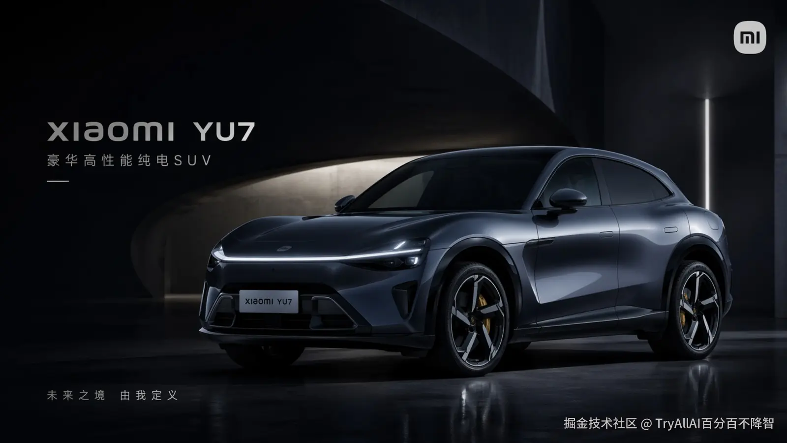 | 小米 YU7 海报,提供了暗黑奢华系的视觉母版 | 迁移到问界 M9 后,整张图依旧能立住高级感 |