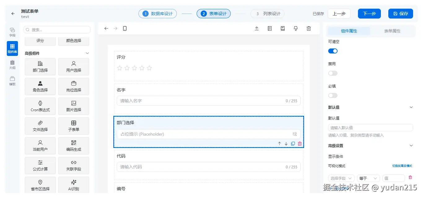 再也不用为在线表单付费了。系统内置了极其丰富的组件库(包括部门选择、角色选择、联动字段等复杂高级组件)。不会写代码的业务人员,也能通过拖拽轻松搭出满足企业复杂收集需求的表单。