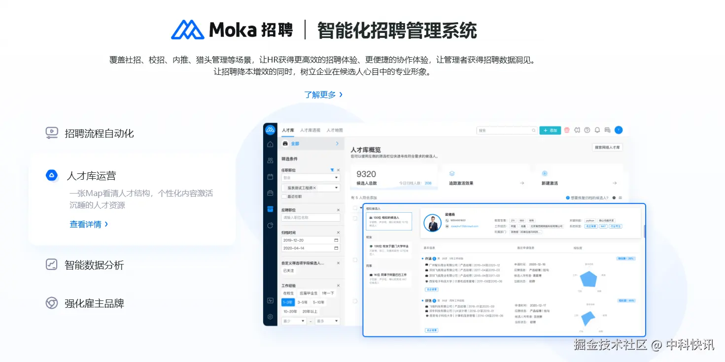 Moka在国内起步较晚,是互联网属性创业,其优势在于招聘流程协同与候选人体验,围绕端到端招聘流程优化,更适合中小企业。