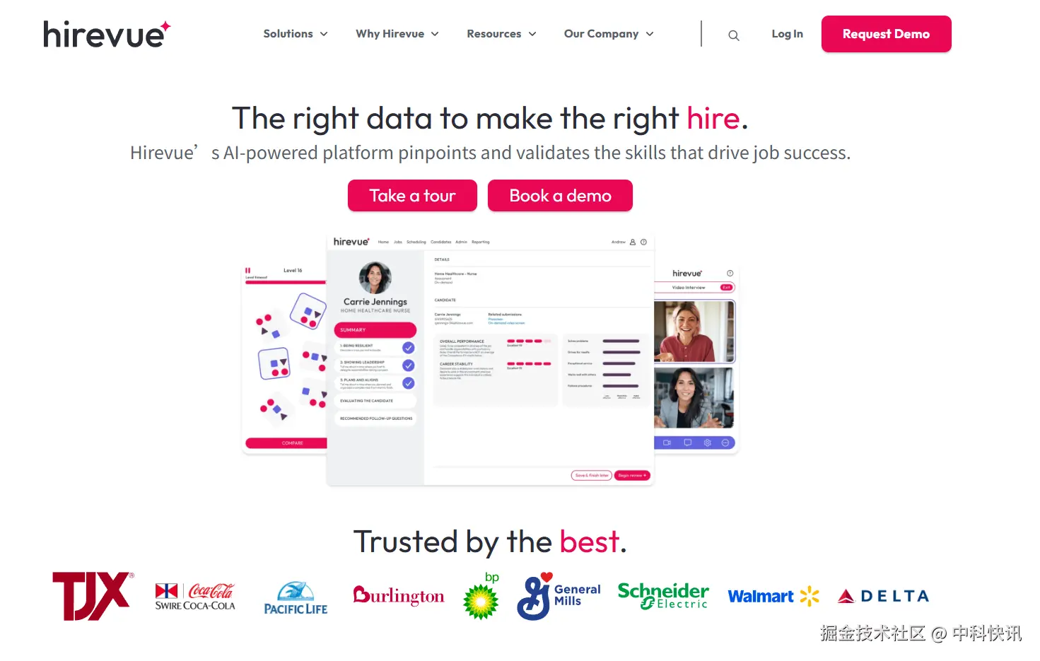 视频面试AI领域的鼻祖,在全球范围内服务大量世界500强企业。其AI通过分析候选人在视频面试中的语言模式、用词选择和面部表情,提供洞察评估报告。HireVue专注于评估和面试环节,AI评估候选人回答中的能力信号、沟通技巧和岗位资质。