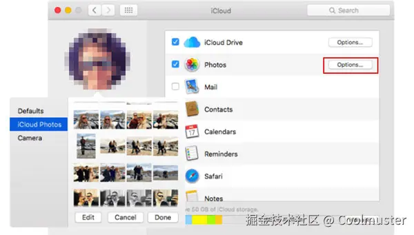 步骤 3. 单击“选项”并选择“iCloud 照片”。