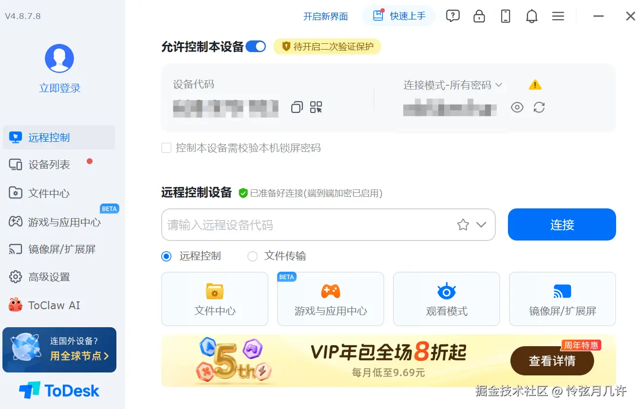ToDesk 的免费版已经相当能打,基础的远控功能全部可用,画质和延迟也没有被过度限制,对于个人用户的日常需求来说基本够用。这种"免费版不阉割核心体验"的策略让我对这款软件的好感度大幅提升。