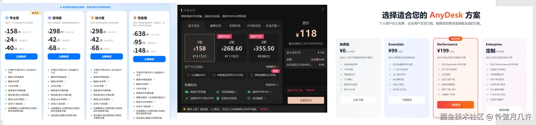 AnyDesk 的付费套餐价格在三者里是最不划算的,感觉功能上面并没有多出特别多,对于国内用户来说性价比偏低,很难说服自己为它付这个价格。