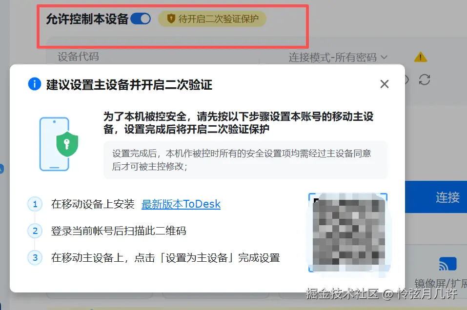 ToDesk 的安全机制在三款软件中最为完善,尤其在二次验证防护上表现出色。当有新设备发起连接时,必须通过动态验证码进行确认,即便设备码与密码泄露,无二次验证也无法接入,有效保障了远程连接安全。