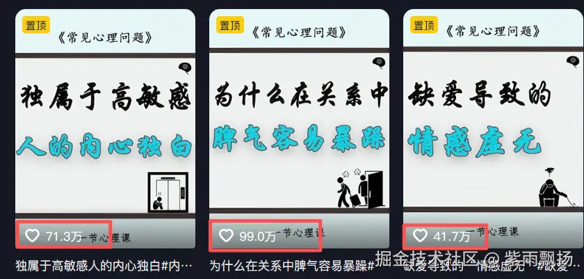 最近的工作节奏快,压力大,无意间刷抖音时,发现这种心理学知识赛道的流量特别好,像这种一节节的心理学开导视频,非常的治愈,击中人们的内心深处。