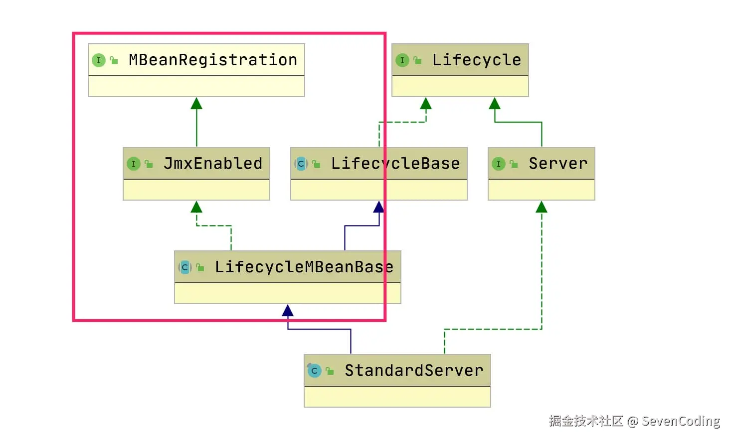 这样理解LifecycleMBeanBase时,你便知道它包含两块,一个是Lifecycle的接口实现,一个是Jmx接口封装实现。