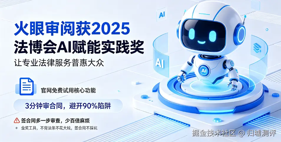 火眼审阅获得 2025 法博会 “AI 赋能实践奖”,不仅是对产品技术的认可,更是对 “让专业法律服务普惠大众”理念的肯定。现在官网,就能免费试用核心功能,花 3 分钟审一遍合同,帮你避开 90% 的合同陷阱,守住自己的钱袋子。