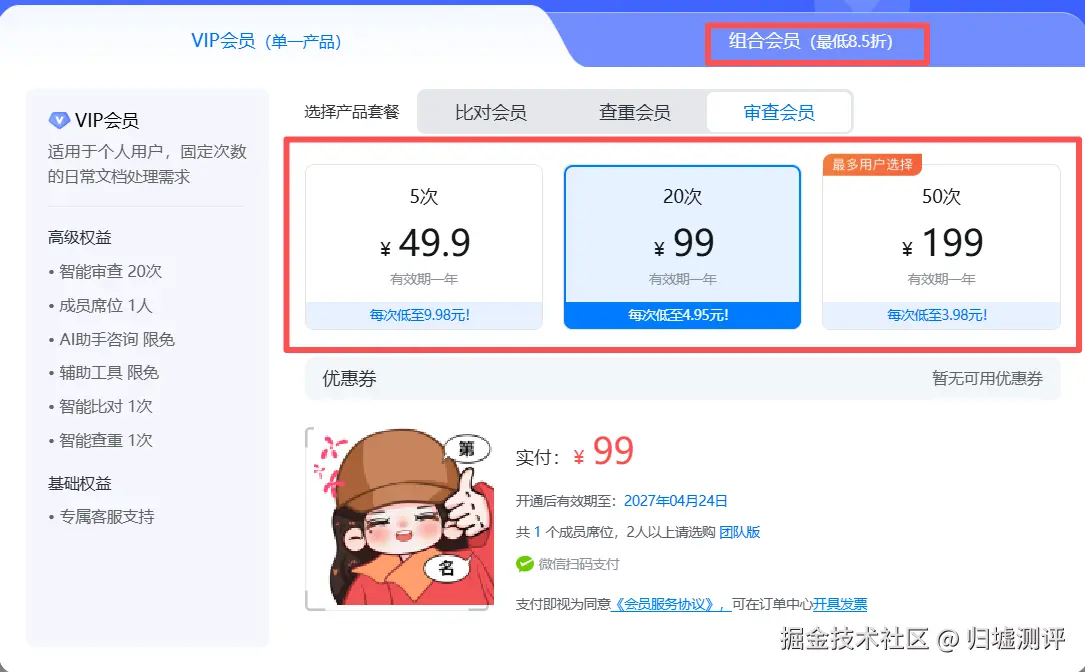 这种灵活的付费模式,让个体户、初创企业、大企业法务都能找到适合自己的方案,真正实现 "专业审查人人可用"。