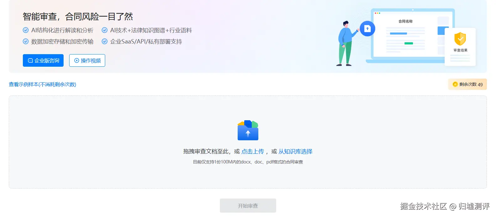 对于每天和合同打交道的法务、企业主、个体户来说,这个奖项背后的意义更深远:终于有一款工具,能解决 "审得慢、成本高、漏风险" 的行业痛点,让专业合同审查不再是大企业和有钱人的专属特权。我们花了 1 周时间深度实测,今天就给大家全面解析这款获奖产品到底有多好用。