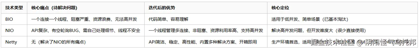 整个Java网络编程的迭代,本质上就是“解决痛点、提升效率、降低门槛”的过程,用一张表就能看明白: