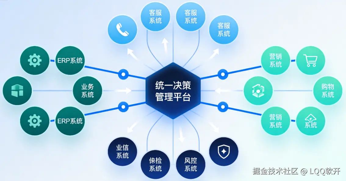 很多基础的决策逻辑,几乎每个系统都在重复开发、重复维护。比如“黑名单用户”、“异常订单”的判定逻辑,客服系统、营销平台、风控中心、ERP系统都要单独开发一遍,不仅浪费大量的技术研发资源,更会带来后续维护的噩梦。