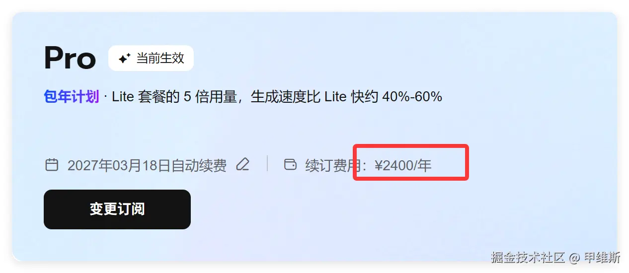 但是我后台好像扣了 1000 多,我的 Pro 套餐续订价格是 2400 元/年。