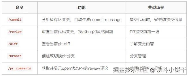 - Git工作流深度集成:自动生成commit message、代码审查、PR管理一站式完成。