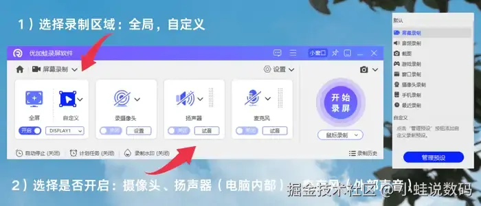 数据蛙录屏软件核心功能的录制操作十分简便,3步即可搞定: