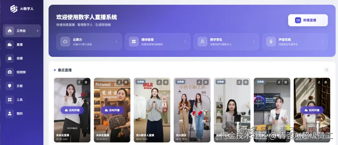 青否数字人直播系统UI界面全面焕新,全新工作台布局,功能一目了然!