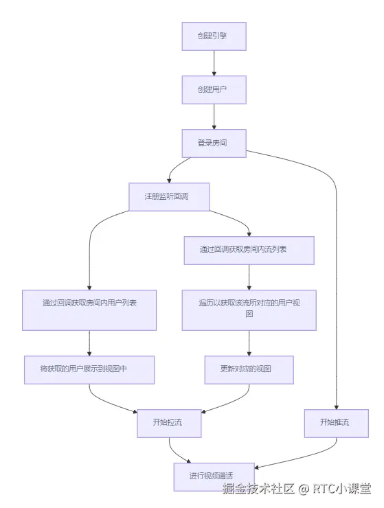 请参考 快速开始 - 实现流程 依次完成登录房间、推流和拉流相关操作。