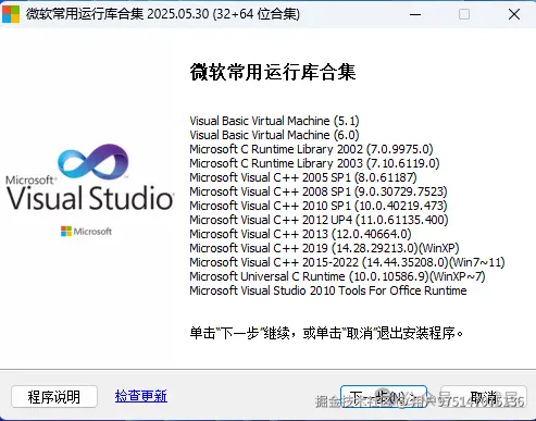 - Visual C++ 运行库(2005、2008、2010、2013、2015、2017、2019、2022)