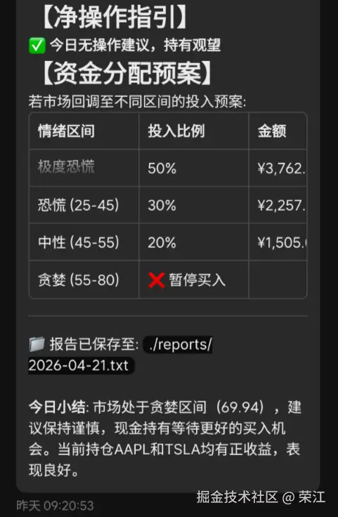 因为投资决策是复杂的。你需要看市场情绪、持仓成本、历史回测、配置比例……一个人在压力下很容易漏掉关键信息。AI 不会疲劳,不会恐慌,它可以同时记住所有约束条件: