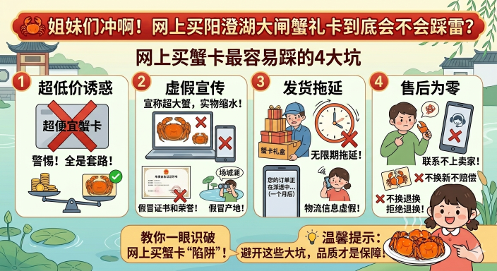 今年蟹季又要来了!每次给爸妈、朋友、领导送礼,我都纠结网上买的蟹卡会不会是假的?别慌!我自己踩过坑也捡过宝,总结出3个核心铁律 + 避坑全攻略,按着做基本不会翻车,保证收到正宗阳澄湖大闸蟹的鲜甜膏黄!