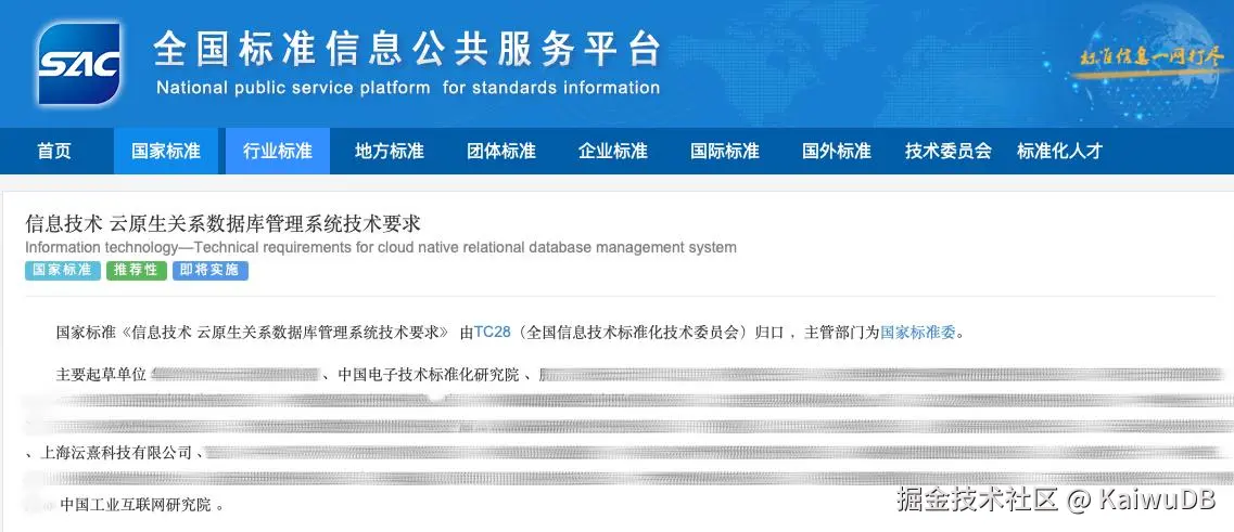 近日,国家市场监督管理总局、国家标准化管理委员会正式发布 GB/T 47343-2026《信息技术 云原生关系数据库管理系统技术要求》国家标准,该标准将于 2026 年 10 月 1 日正式实施。KaiwuDB 作为核心起草单位深度参与本次标准编制,依托自身技术积累与行业实践经验,为标准研制提供了重要支撑。