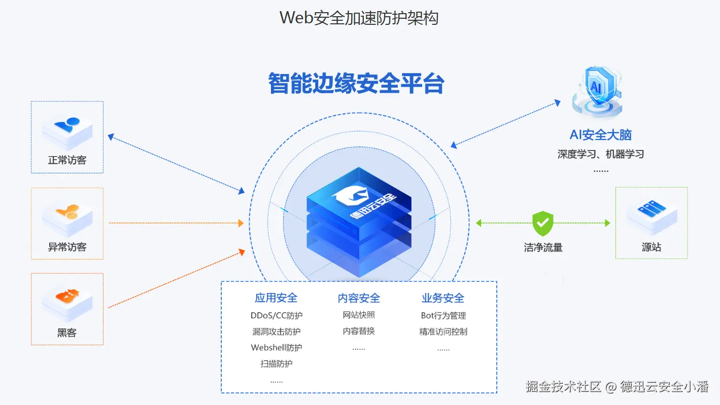 · BOT 行为分析:利用 AI/ML 模型识别鼠标轨迹、点击间隔,区分人类用户与恶意机器人 。