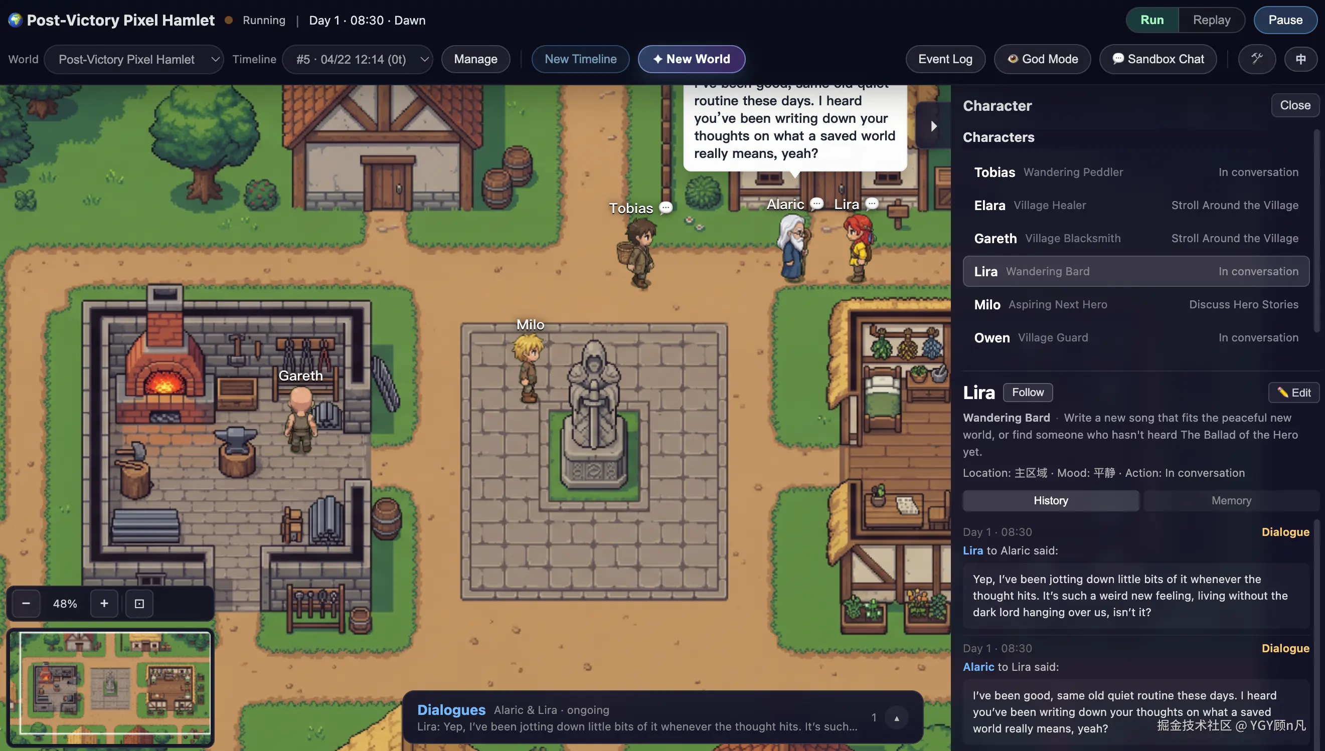 你也可以作为"上帝"随时介入 —— 注入事件、编辑角色记忆或人格,看整个世界因此走向何方。