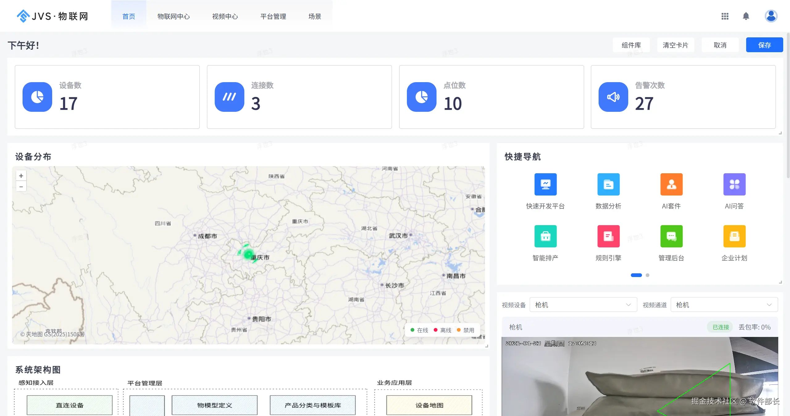 - 智慧物联领域:通过低代码搭建设备监控平台,对接各类物联网终端设备,实现设备数据实时采集、状态监控、故障报警、远程控制,适配智慧园区、智慧工厂、智慧安防等复杂场景。