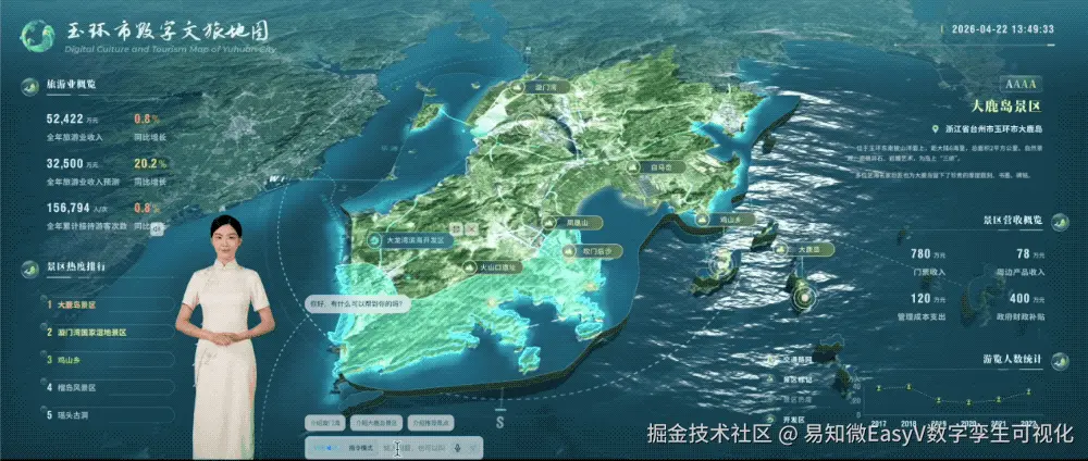 以文旅游客中心场景为例:可以借助 AI 智能体在展示大屏中内置具备文旅知识库、实时联网搜索能力的数字人形象,实现游客随问随答。