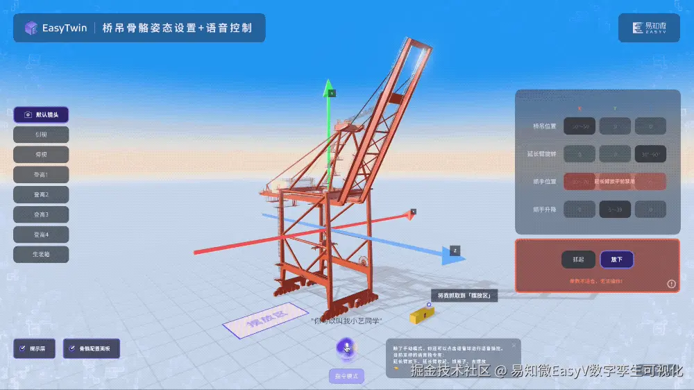 以港口桥吊设备控制场景为例:运维人员可以在地面操控设备的骨骼姿态,完成集装箱摆放。