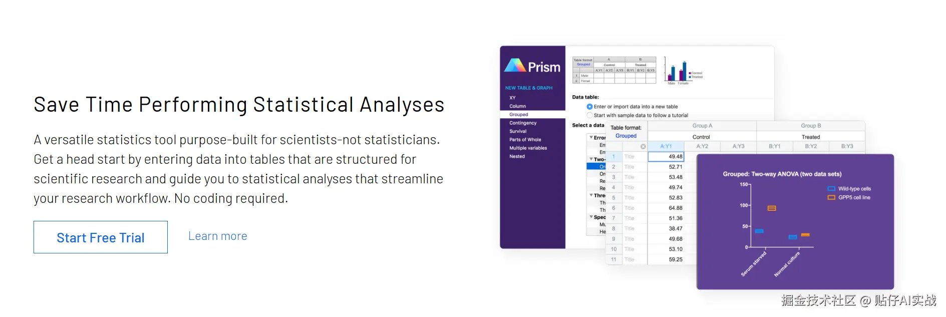 GraphPad Prism是生物、医学领域的专用绘图工具,集生物统计、曲线拟合和科技绘图于一身,不用在多个软件之间来回切换,效率直接拉满。