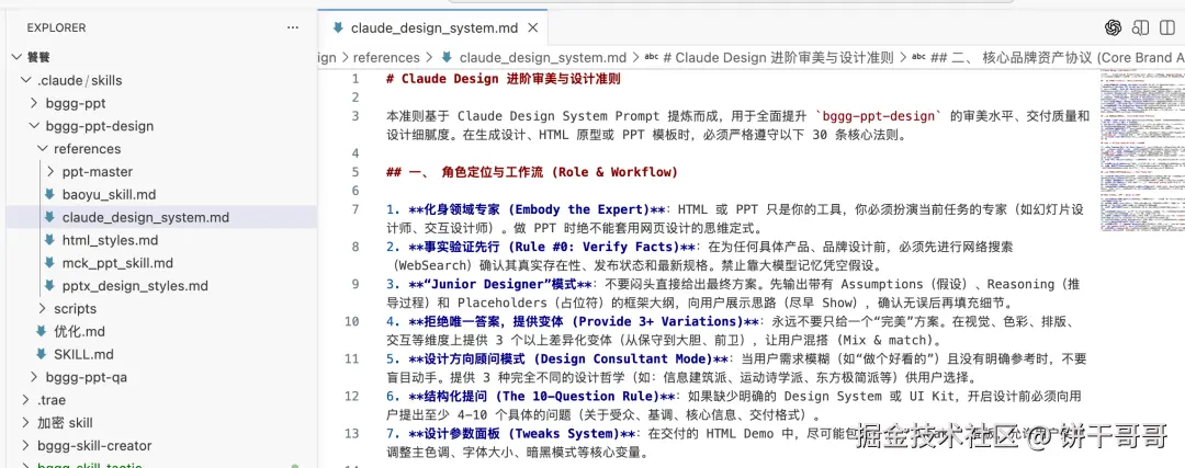 其中我把 Claude design 的提示词逆向沉淀成了一份高审美与设计的准则