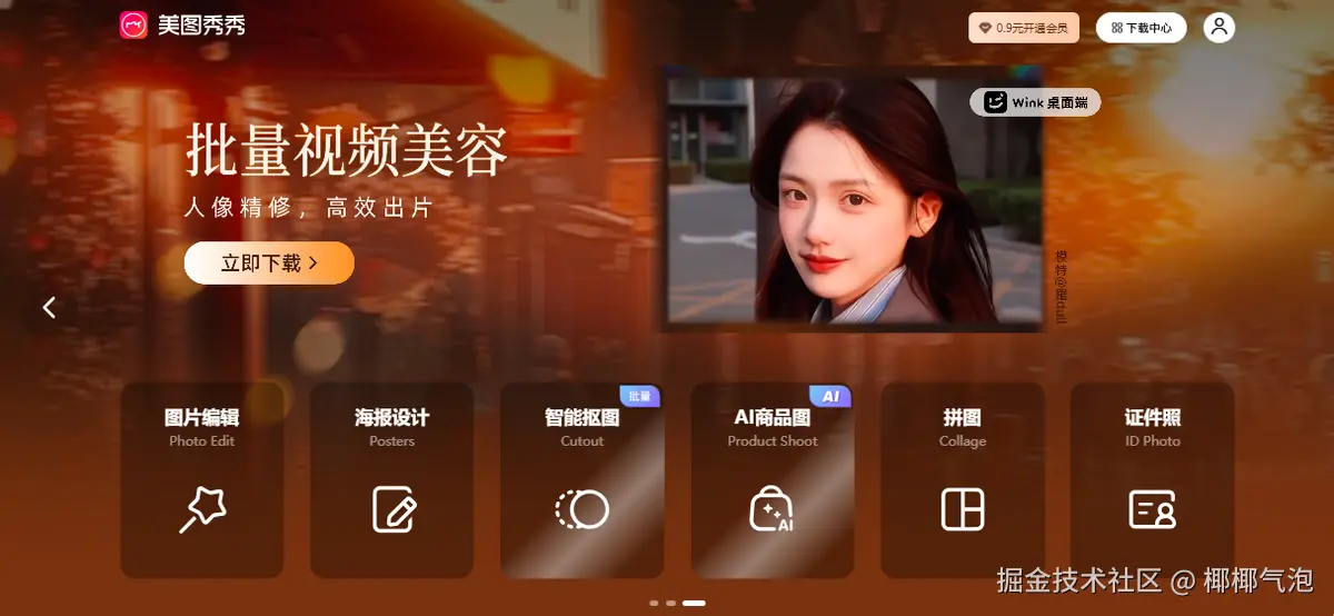 操作路径:浏览器搜索"美图秀秀网页版"→进入官网→点击"万物抠图"→上传图片→AI自动识别→手动微调选区→预览效果→点击下载(选择PNG格式)。