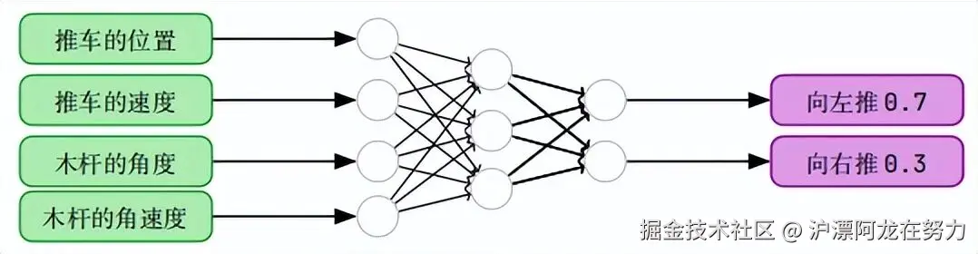 比如神经网络可能输出:左推 0.7,右推 0.3。