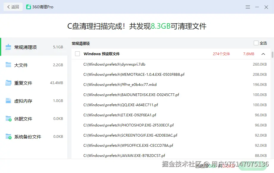 会将一些在C盘里面的大文件、重复文件、常规清理项/休眠文件等清理出来,快速恢复C盘空间。