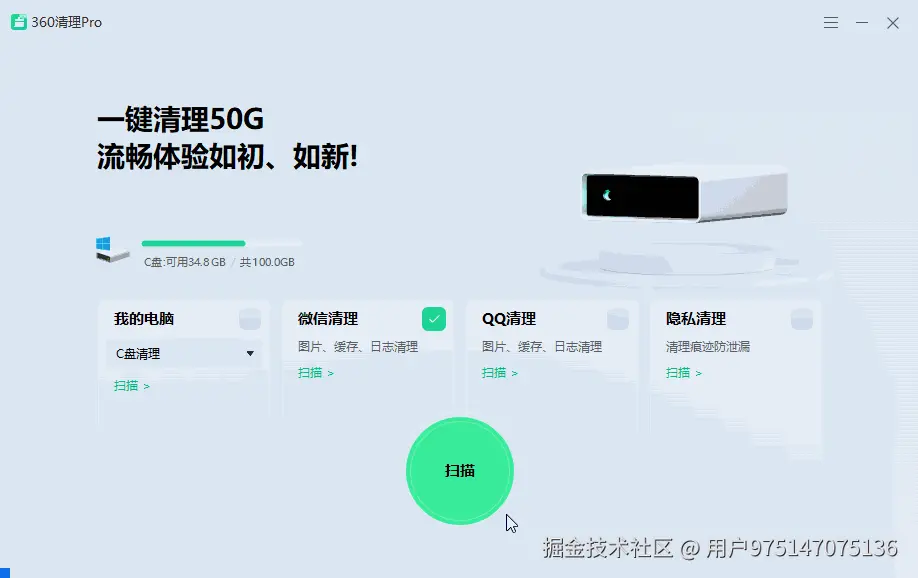C盘空间不足时会导致系统运行缓慢,那么这里,分享迷要给大家推荐一款非常好用的清理工具,可以很好的清理C盘、微信/QQ等占用空间,而且是专业提取版,不用安装——360清理Pro
