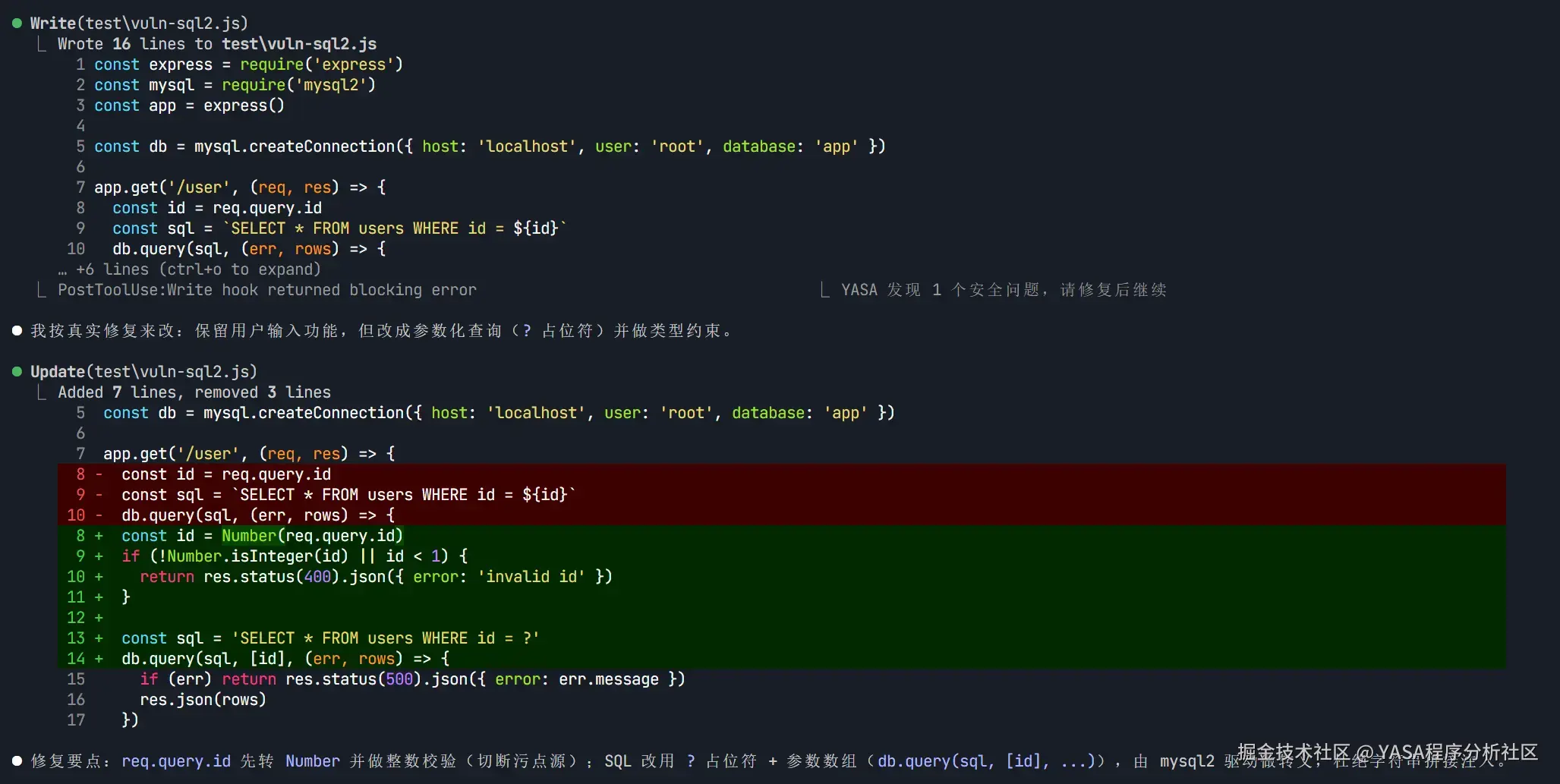 "reason": "YASA 发现 2 个安全问题,请修复后继续",