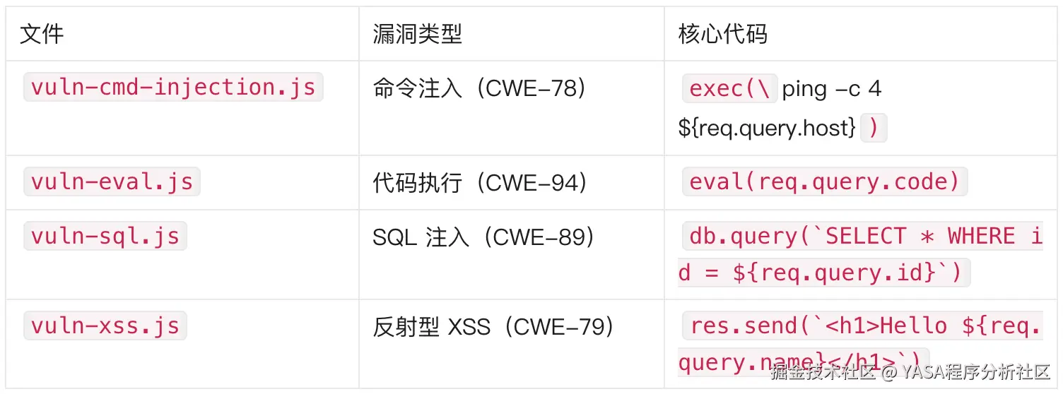我们构造了 4 个典型漏洞场景,由 Claude Code 直接写入磁盘: